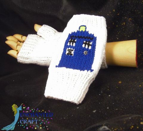 Created in beautiful soft grey yarn with a detailed DALEK worked right into the knitting in black. The DALEK has blue glass bead on the eyestalk, and the iconic top light in white.